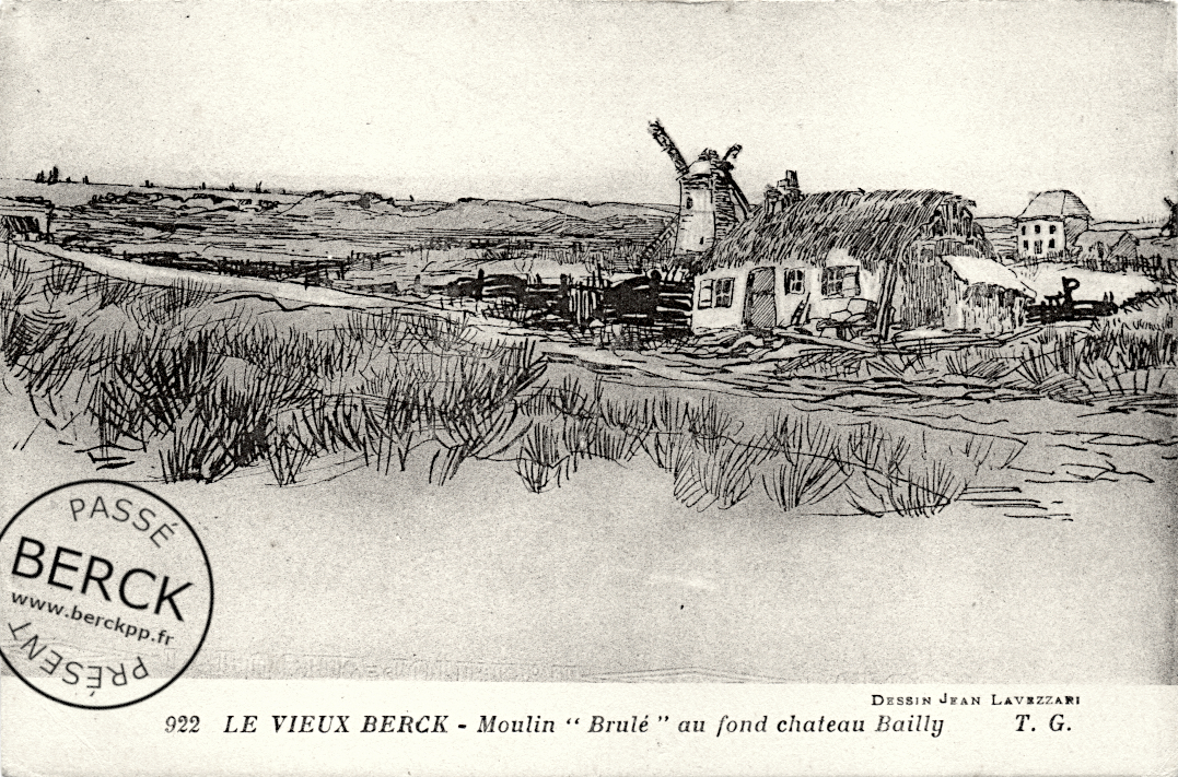 LE VIEUX BERCK – Moulin » Brulé » au fond château Bailly