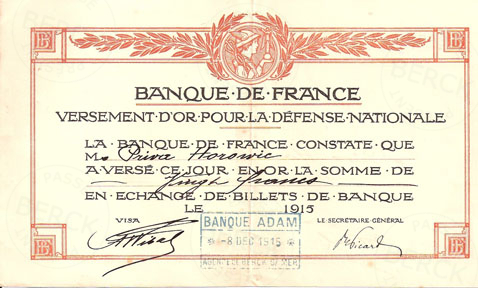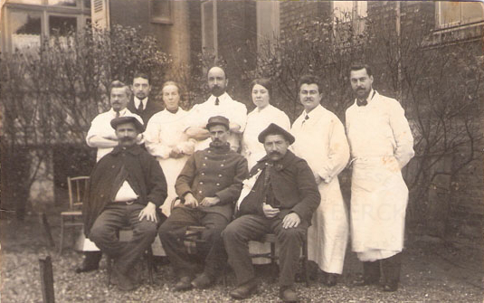 << …here are 4 nice photos of Berck life in 1915 – 1916 + a nice document – a certificate for payment of Defence Nationale Tax in 1915 at a Berck Bank. The photos belonged to my late grandmother Priva Horowitz (later married and turned Bendet, died in 1987) who stayed at Villa Normande for treatment of a broken knee from December 1912 to early 1917 (she was originally from Warsaw but could not return home because of the World War). In the photo called « At Berck – V. normande.. » Priva is the first girl to the right. I believe Priva once told me that the soldiers in all the photos are injured Turkish soldiers who came to Berck during the First World War to be treated… >>
